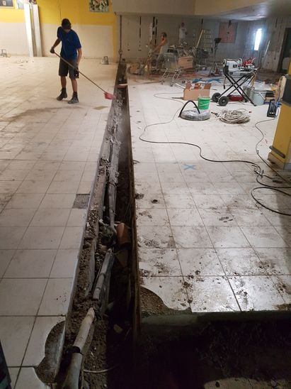 Bei diesem Umbau stellten wir Bodenkanäle für neue Kälteleitungen und die Entwässerung her.